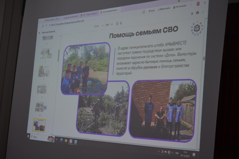 16620 человек были задействованы за отчетный период в 94 программных и проектных мероприятиях. Популяризацией и вовлечением в добровольческую и общественную деятельность (84 мероприятия) охвачено свыше 14200 человек. Патриотическому воспитанию было посвящено 117 мероприятий (37429 человек), профессиональному развитию — 114 мероприятий (16879 человек). На каждом из направлений докладчик остановился подробнее.