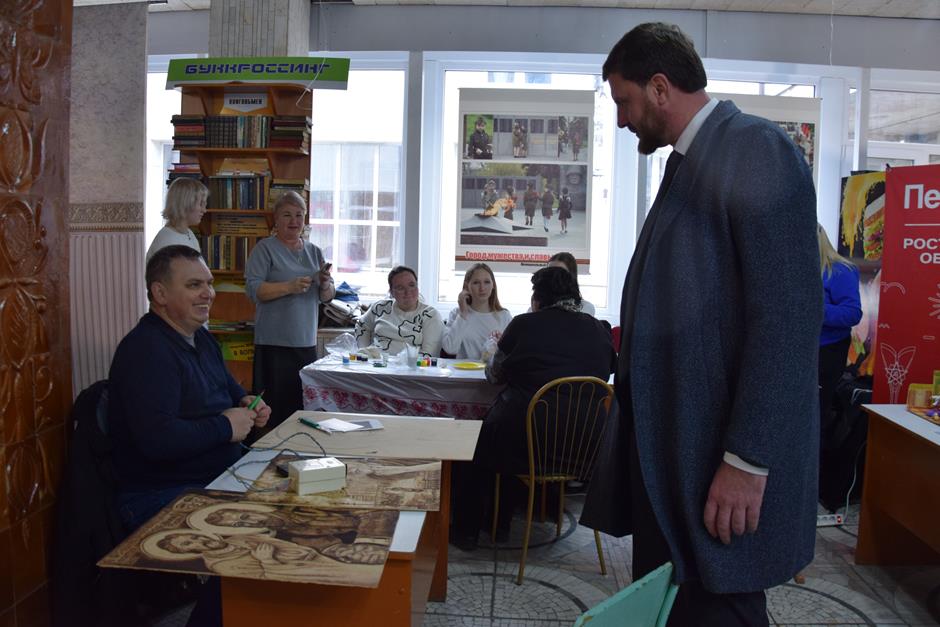 Традиционно холл городского Дворца культуры стал площадкой для презентации художественных и декоративно-прикладных работ. Кроме ярмарки творческих достижений был включен «открытый микрофон»: для всех желающих выступить со стихами, песнями, танцами.