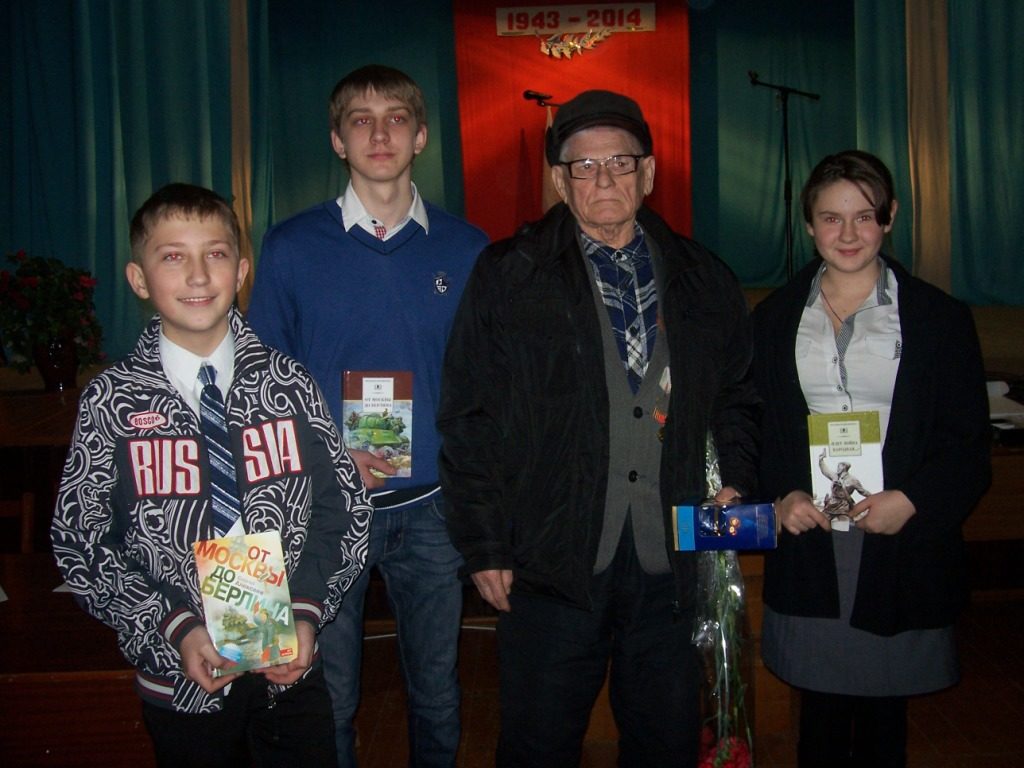 За каждый правильный ответ школьники получали жетоны, а в завершении викторины жюри подвело итоги. Победителями тематической викторины стали четыре ученика: Артём Дорохин (6б, шк.22), Лиза Фоменко (9б, шк.27), Денис Кузьмин (9б, шк.22), Ольга Сиротина (7а, шк.27). Им были вручены подарки. А после завершения официальной части школьники окружили ветеранов и стали расспрашивать их о жизни, просили дать автограф, сделали общее фото на память.
