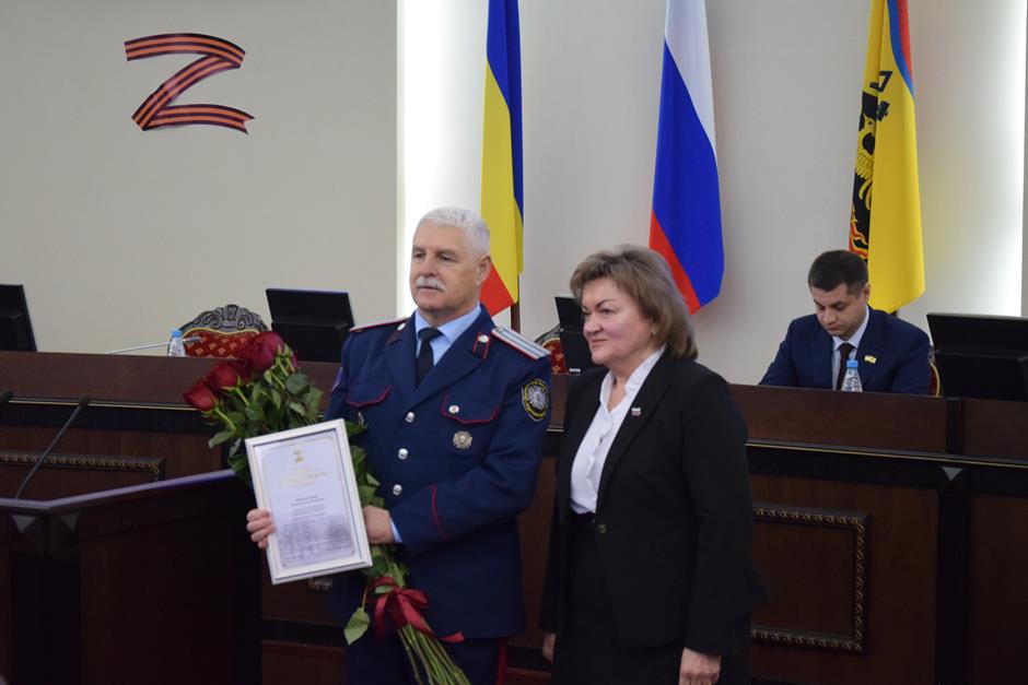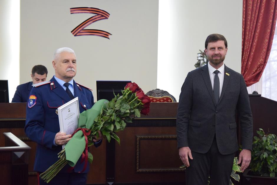 В начале заседания присутствующие поздравили директора Шахтинского генерала Я.П. Бакланова казачьего кадетского корпуса Виталия Бобыльченко с получением награды – Благодарности Главы города Шахты, которую вручила Людмила Овчиева.