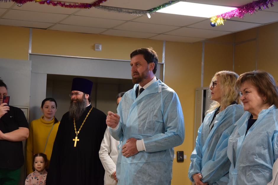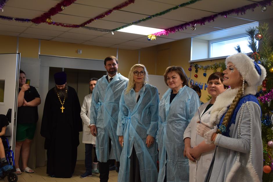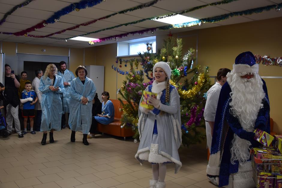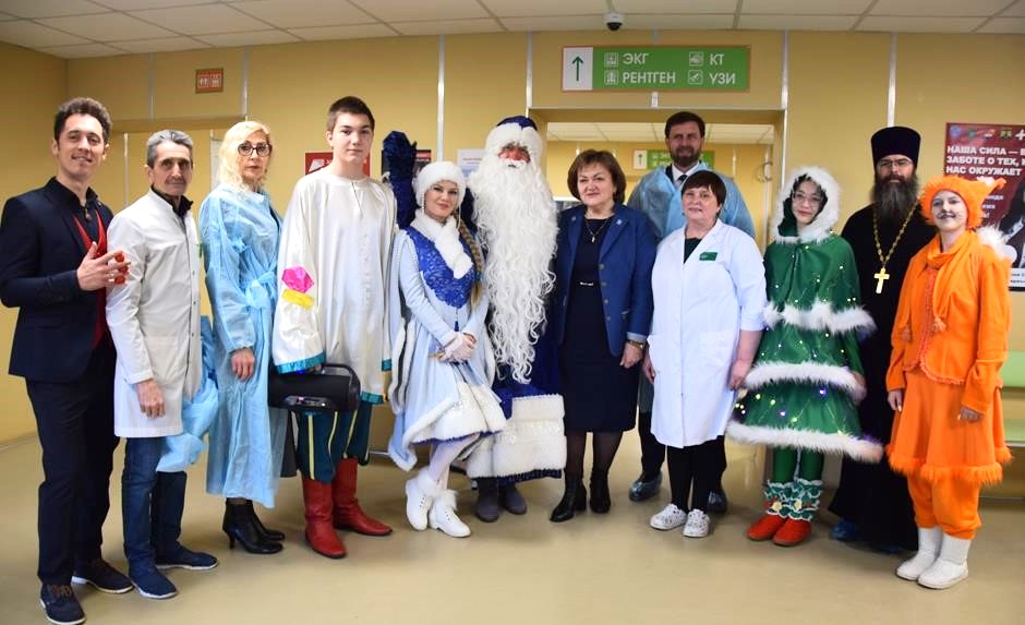 Настроиться на праздник, а главное – ускорить выздоровление помогает маленьким пациентам Детской городской больницы уже больше 13 лет проект «Больничный театр». В этот раз сладости и подарки ребятам в канун Нового Года привезли Глава города Шахты Людмила Овчиева, председатель городской Думы города Шахты Максим Голодов, заместитель главы Администрации Светлана Морозова, благочинный приходов Александровск-Грушевского округа, член Общественной палаты города, протоиерей Александр Теличкин, депутат городской Думы, главный врач ГБУ РО «ДГБ» Светлана Казакова.