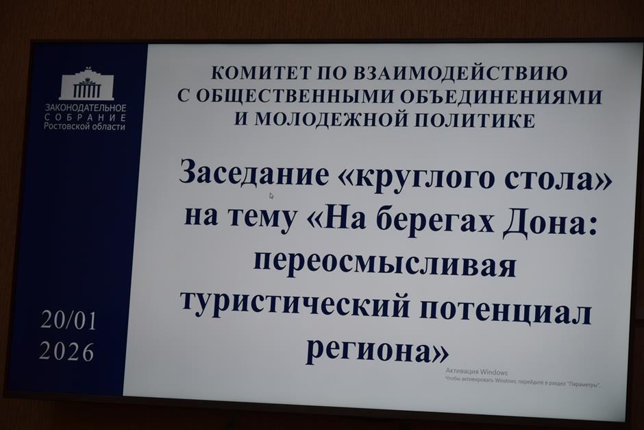 «На берегах Дона: переосмысливая туристический потенциал региона». Этой теме посвятили круглый стол, состоявшийся в Шахтах по инициативе комитета Законодательного Собрания Ростовской области по взаимодействию с общественными объединениями, молодежной политики, спорту и туризму.