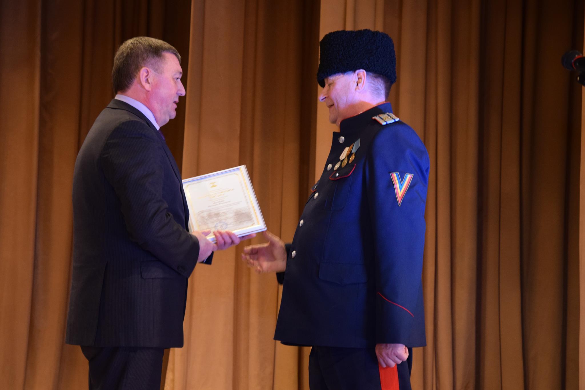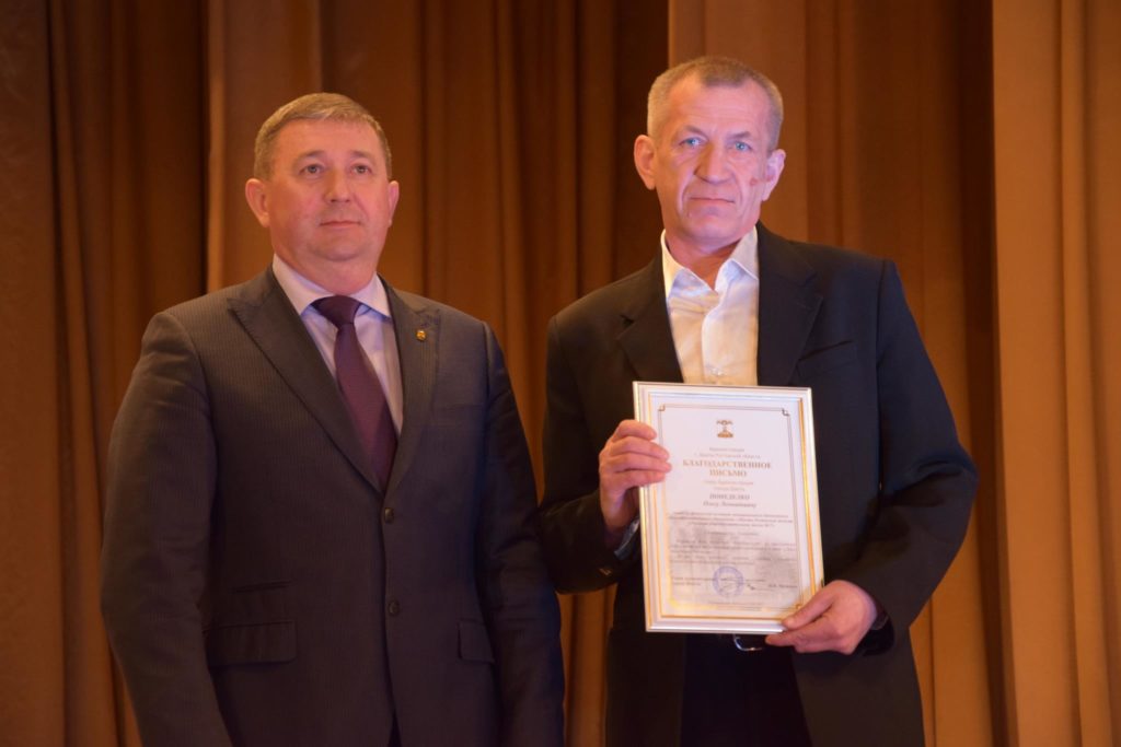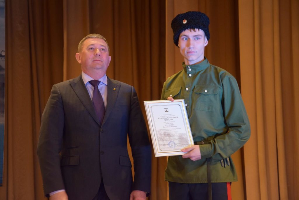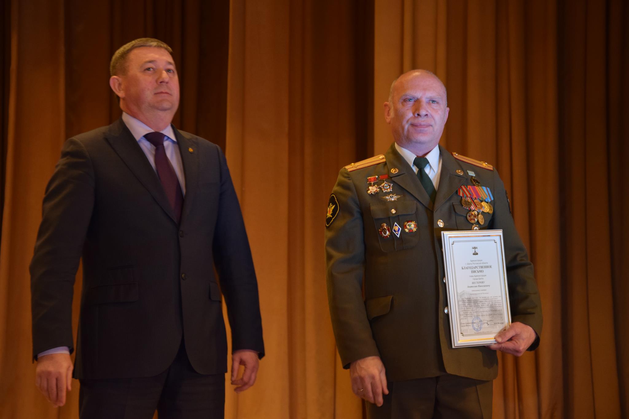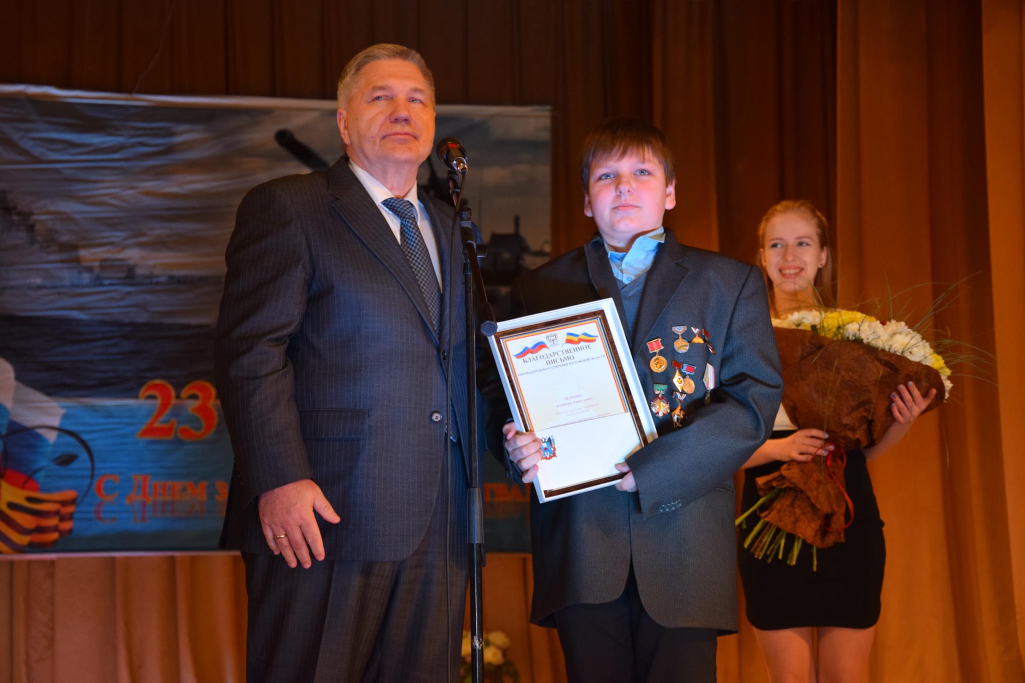 Сергей Михалёв поблагодарил шахтинцев за приглашение в наш город, который для него тоже дорог, и поздравил всех с этим замечательным и очень мирным праздником, который чествует людей, берегущих наш покой! Также он подготовил для вручения Благодарственное письмо Законодательного Собрания Ростовской области с денежной премией для Почётного гражданина города Шахты Владимира Кирилловича Петренко, но так как он в настоящее время болен, получить награду за деда пришёл его внук Максим! Это был трогательный момент, когда на сцену поднялся подросток в пиджаке деда с медалями и принял награду!