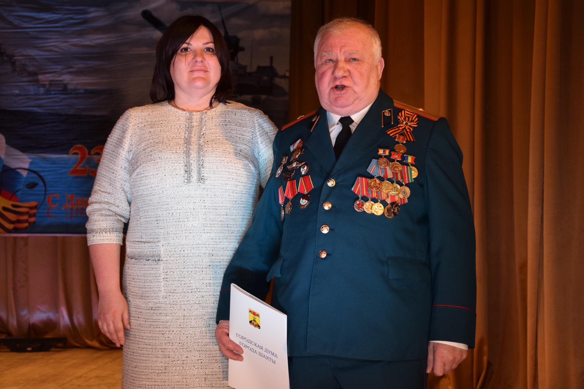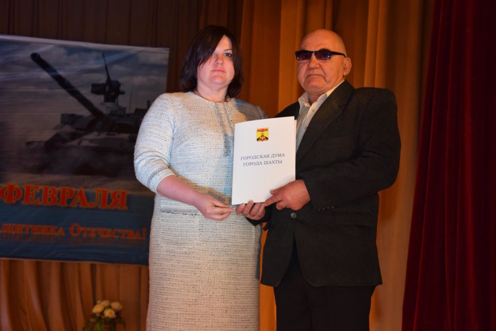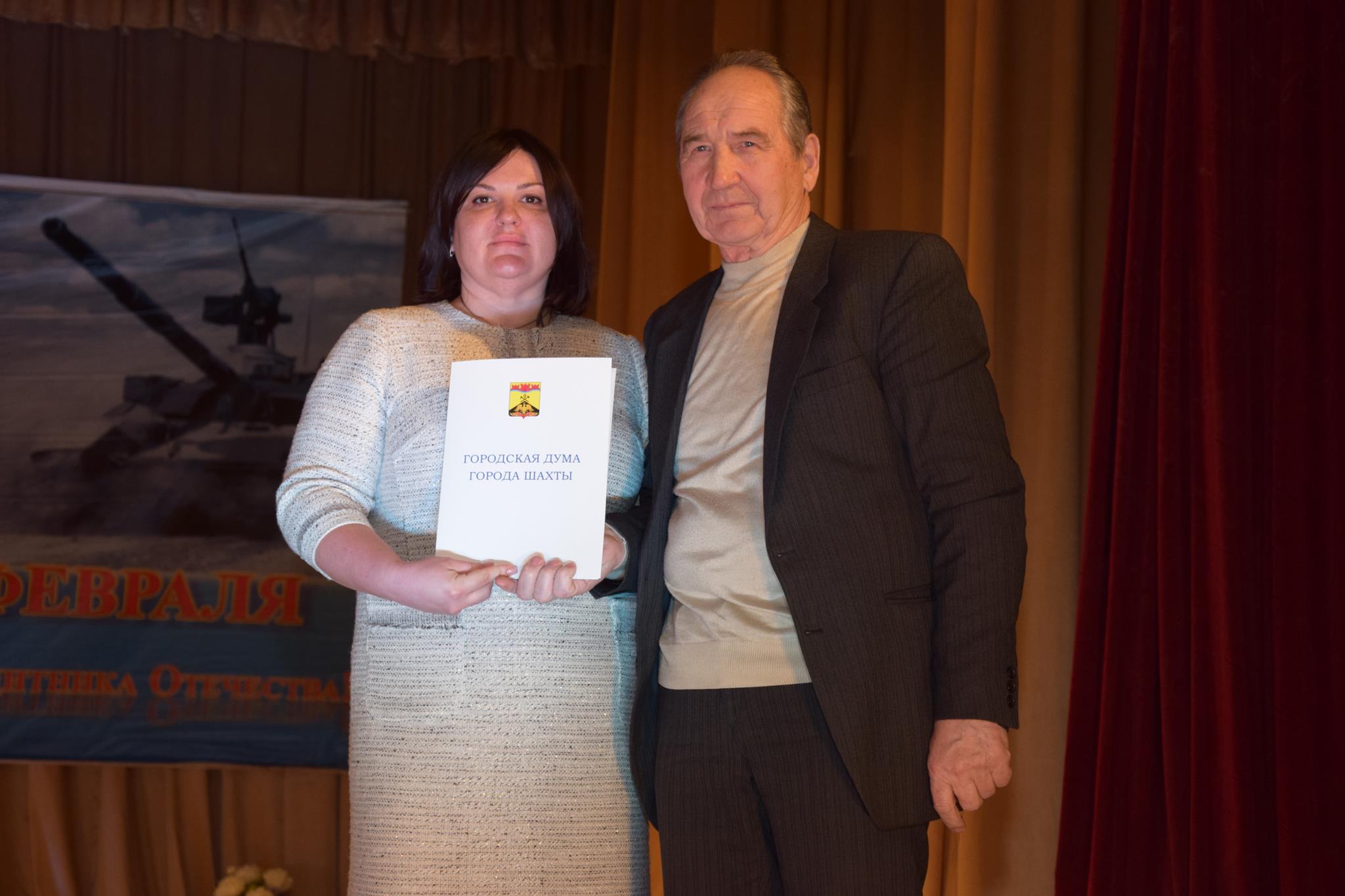 – Филонову Владимиру Александровичу – родителю, сын которого погиб при исполнении воинского долга за достойное воспитание детей, эффективную работу по патриотическому воспитанию молодежи, активное участие в общественной и культурной жизни муниципального образования «Город Шахты» и в связи с празднованием Дня защитника Отечества.