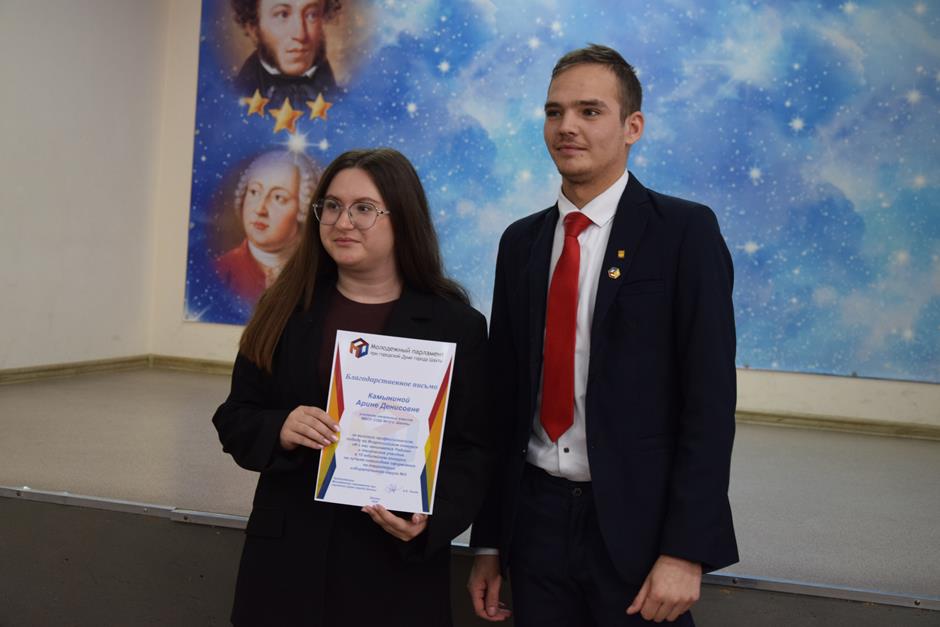 Были также вручены поощрения председателя комитета Законодательного Собрания Ростовской области по взаимодействию с общественными объединениями, молодежной политике, спорту и туризму Ирины Жуковой, донского парламентария Дмитрия Суворова – выпускника школы №14. В мероприятии также приняли участие заместитель главы Администрации Александр Байздренко, депутаты городской Думы Вадим Курдюк и Юрий Назарян, а также многочисленные почетные гости, партнеры конкурса и жители округа.