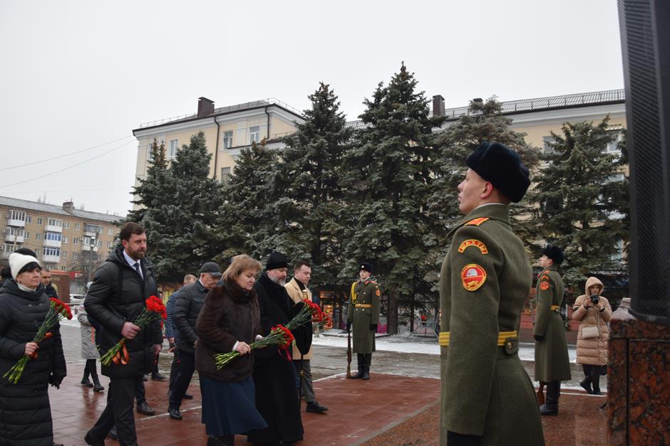 Сегодня утром, в преддверии Дня защитника Отечества, цветы благодарной памяти и признательности за ратный подвиг легли к подножию Солдата-освободителя — на площади 40-летия Победы. В церемонии приняли участие Глава города Шахты Людмила Овчиева, председатель городской Думы Максим Голодов, епископ Шахтинский и Миллеровский Симон, председатель КСП Галина Аверкина, заместители главы Администрации, депутаты городской Думы Константин Корнеев, Юрий Севостьянов, Тенгиз Хиникадзе, Вадим Новоселов, Марина Сидоренко, Светлана Казакова, Владимир Пичугин, Николай Шапошников, Александр Пригорнев, Иван Партышев, Юрий Назарян, Сергей Иванов, Артем Чернов, председатель Общественной палаты города Александр Скориков, активисты «Движения Первых», воспитанники «Поста №1», представители общественности, жители города.