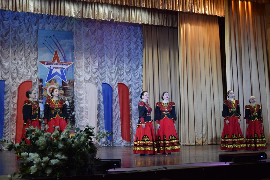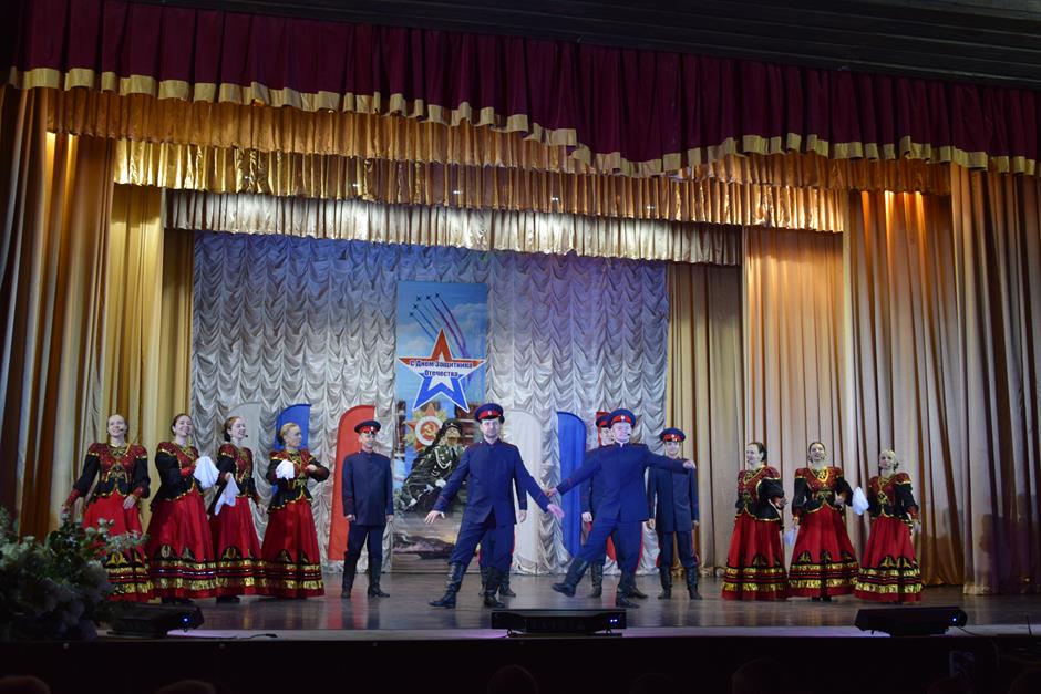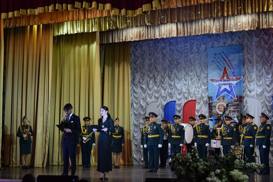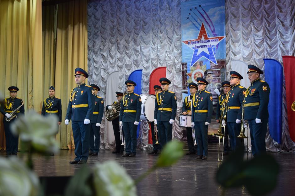 Мероприятия, посвященные Дню защитника Отечества, продолжились праздничной программой в Городском Дворце культуры. В фойе ГДК для гостей звучали патриотические композиции в исполнении духового оркестра войсковой части №3033. Также были представлены экспонаты Шахтинского краеведческого музея, работала фотовыставка «Семья Героя. Шахты».