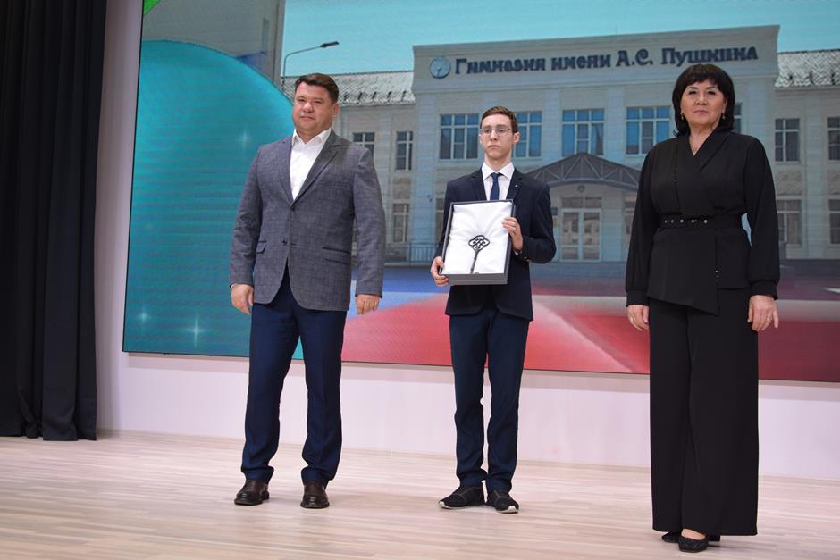 Одним из знаковых моментов стала торжественная передача символического ключа от гимназии руководителю Людмиле Дёминой. Его вручил генеральный директор ООО «СПП «Южтрубопроводстрой» Александр Мулява. К пожеланиям новых успехов на пути к вершинам творческих стремлений и познаний присоединились также выпускники разных лет, родители учеников, педагоги-ветераны, которых участники мероприятия благодарили за многолетний труд и преданность профессии аплодисментами и цветами.