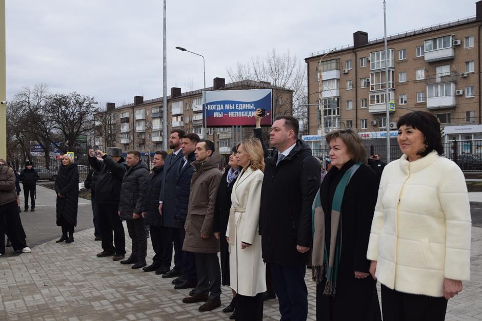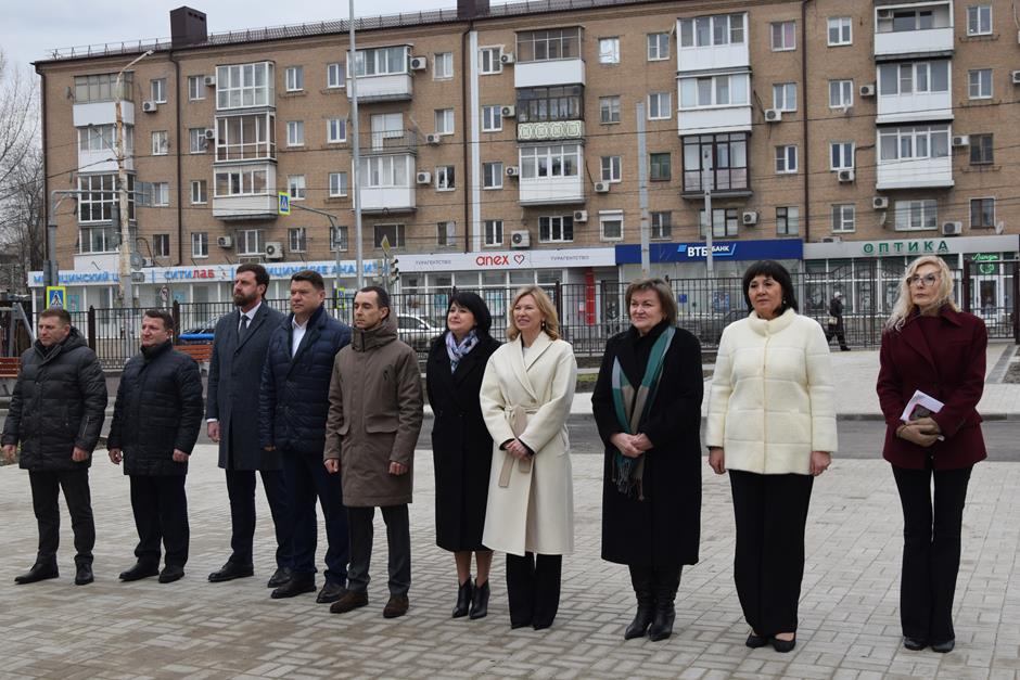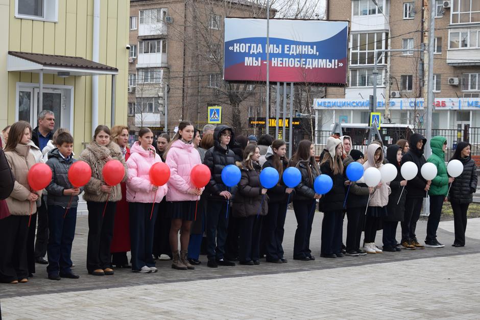 Символическую, праздничную линейку состоявшуюся в школьном дворе, открыло показательное выступление ансамбля барабанщиц «Жемчужины ДГТУ». Право перерезать красную ленту предоставили заместителю Губернатора Ростовской области Андрею Фатееву, депутату Государственной Думы, члену фракции «Единая Россия» Екатерине Стенякиной, Главе города Шахты Людмиле Овчиевой. В торжественной церемонии также приняли участие донской министр образования Тамара Шевченко, депутат ЗСРО Евгений Понамаренко, председатель городской Думы города Шахты Максим Голодов, депутат городской Думы Сергей Измайлов.