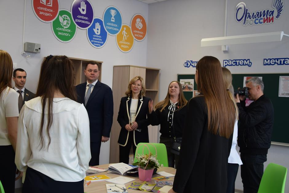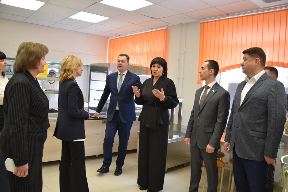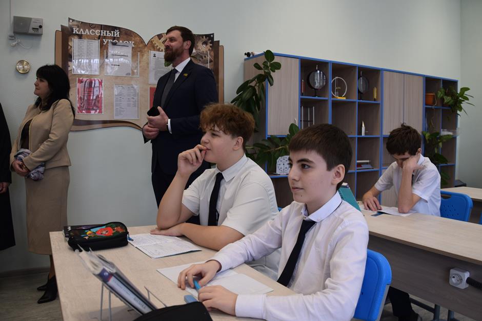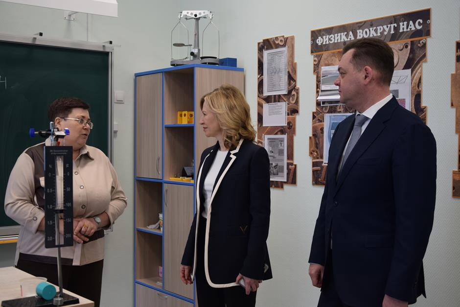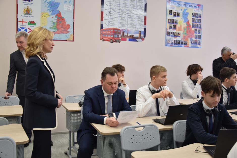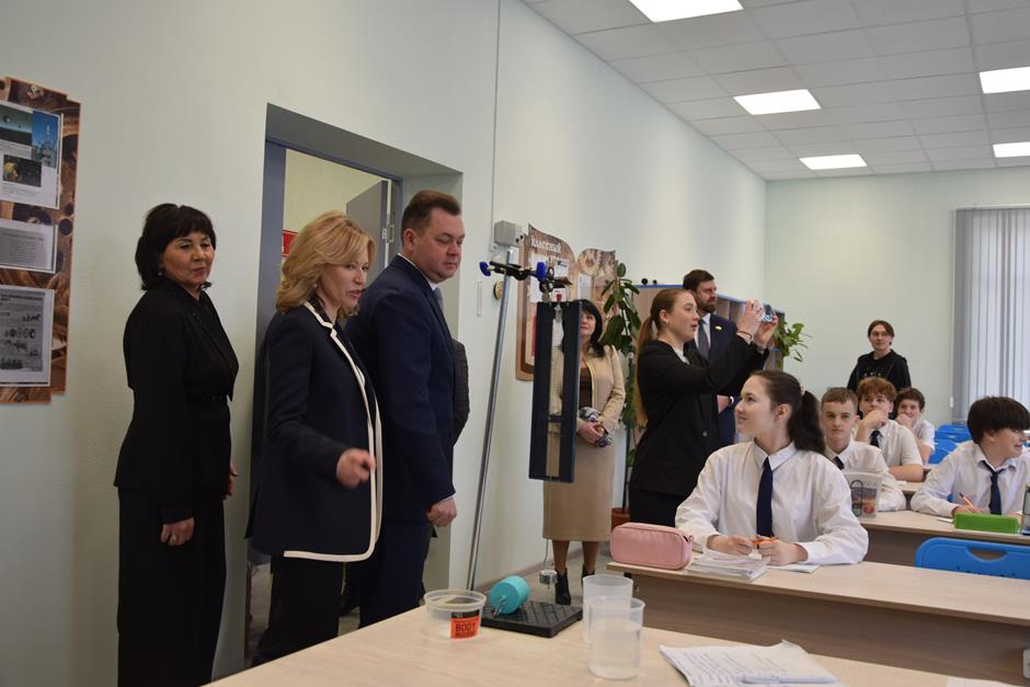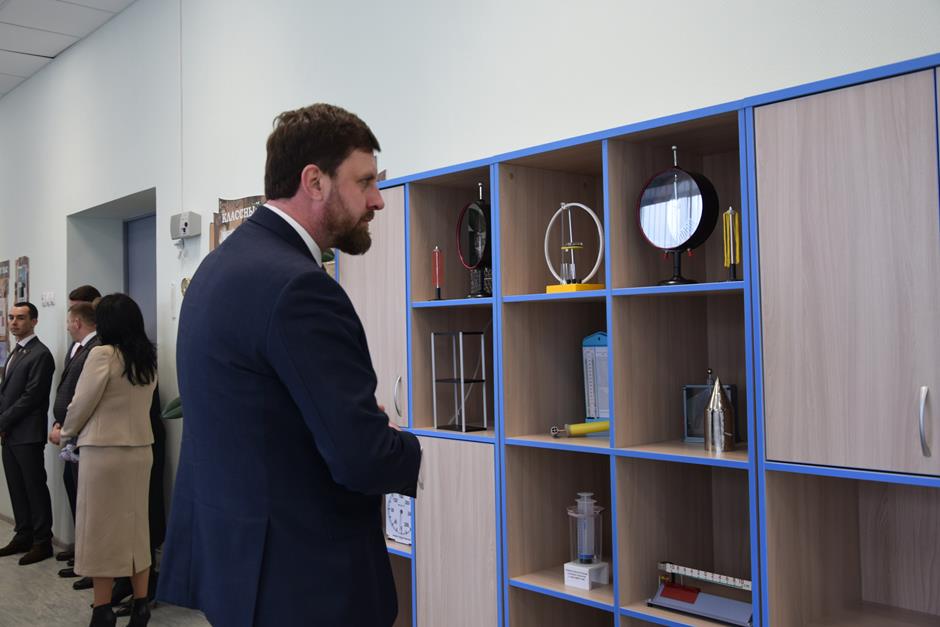 В рамках обзорной экскурсии они побывали в комплексно-краеведческом музее, лингафонном кабинете английского языка, классе физики, ознакомились с зонами отдыха и общения обучающихся, а также посетили два спортивных зала, центр детских инициатив и актовый зал, где была организована концертная программа в исполнении юных талантов.