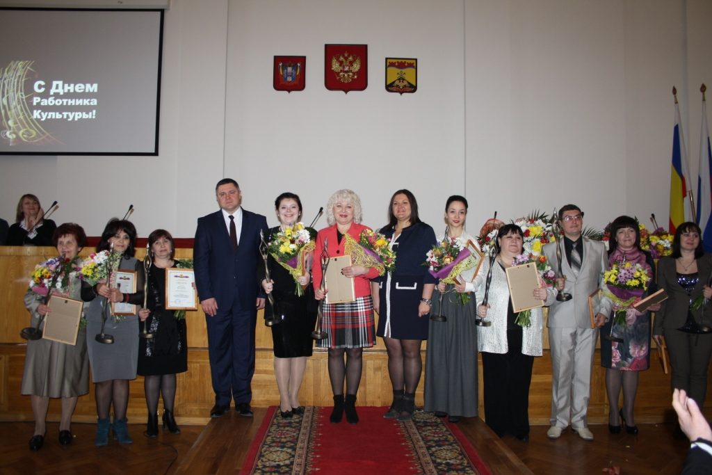 С приветственным словом к присутствующим обратились мэр Д.И.Станиславов, председатель городской Думы И.А.Жукова. А затем состоялась торжественная церемония награждения победителей ежегодного конкурса «Лучший работник культуры города Шахты» с вручением диплома, статуэтки и денежной премией в размере 10000 рублей. Награды получили: