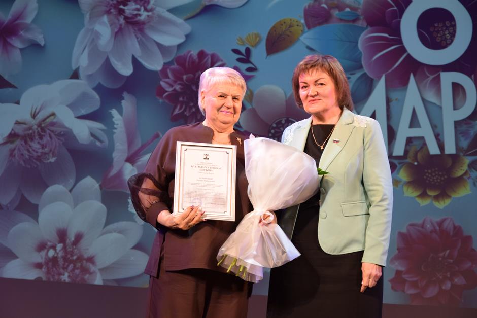 Состоялось и традиционное чествование: теплые пожелания подкрепили вручением заслуженных наград. Благодарственными письмами городской Думы — в связи с празднованием Международного женского дня — поощрены: