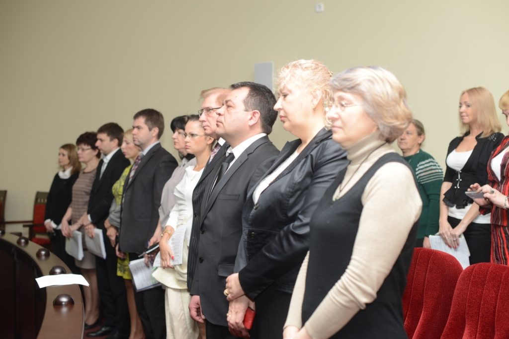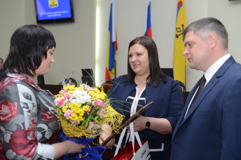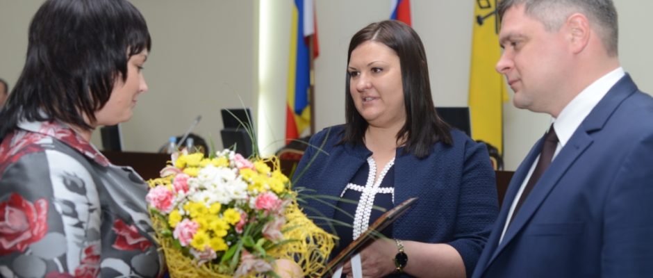 Прежде чем перейти к рассмотрению вопросов, председатель городской Думы И.А.Жукова и мэр Д.И.Станиславов провели процедуру награждения и вручили Благодарственно письмо городской Думы города Шахты Марине Александровне Руденко – воспитателю детского сада №44 «Тополёк», победителю областного финала конкурса «Учитель года Дона – 2014» в номинации «Воспитатель года». Марину Александровну наградили за использование в практике педагогической деятельности современных технологий воспитателя дошкольников, активное участие в формировании позитивного имиджа системы образования в местном сообществе и результативное участие в профессиональных педагогических конкурсах».