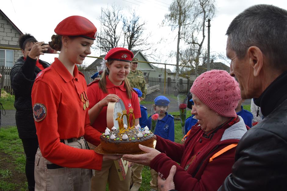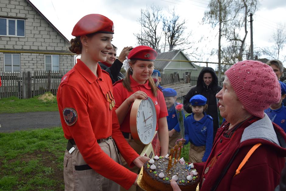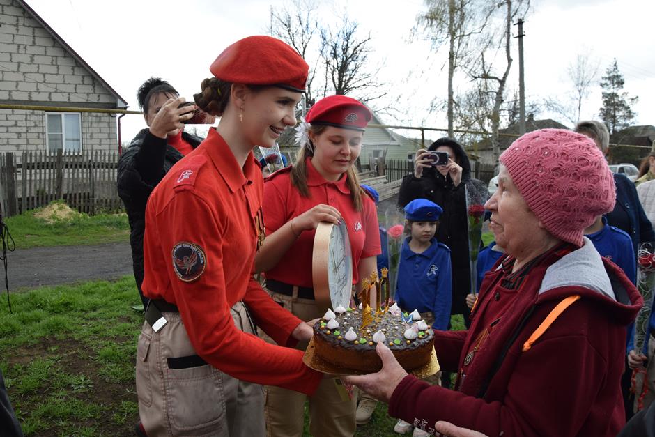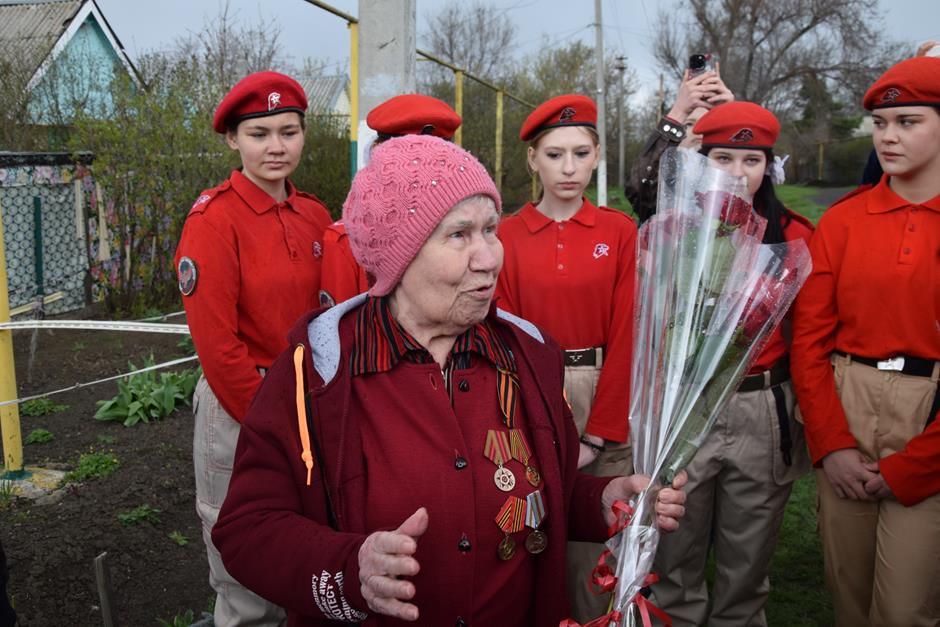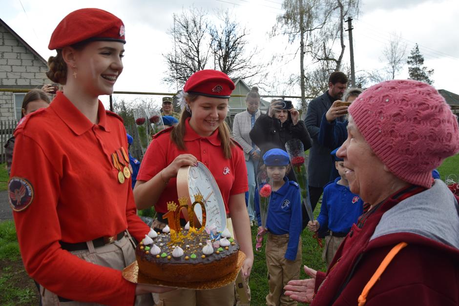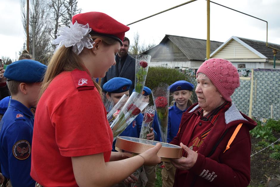 Але Степановне передали официальные поздравления и телеграммы, цветы и подарки. Добавили приятных моментов наследники Победы–юнармейцы.