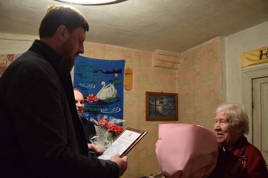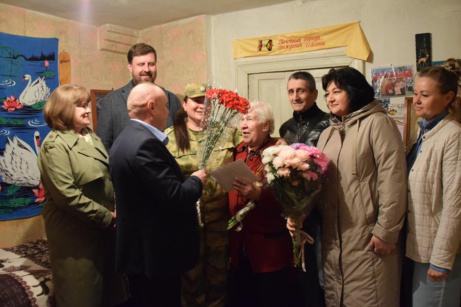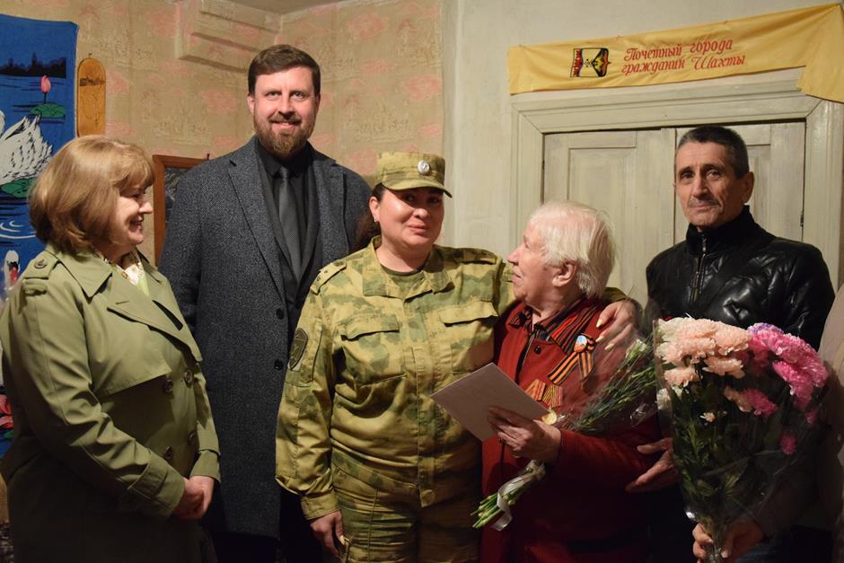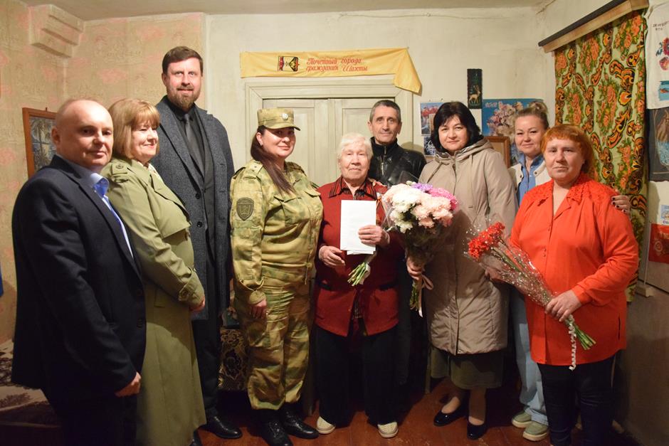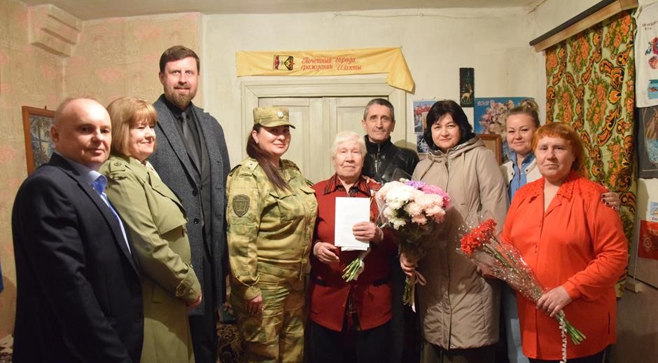 Слова благодарности за героические подвиги и наилучшие пожелания имениннице адресовали председатель городской Думы города Шахты Максим Голодов, депутат городской Думы по округу №11 Сергей Иванов, председатель шахтинского Совета ветеранов Александр Пятаков.
