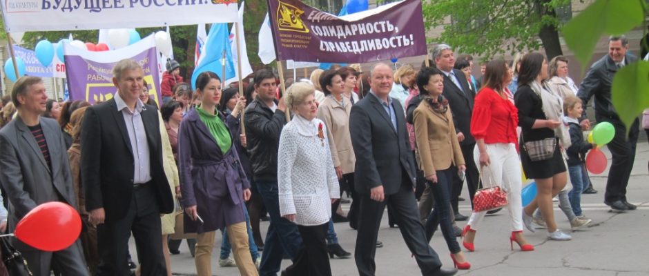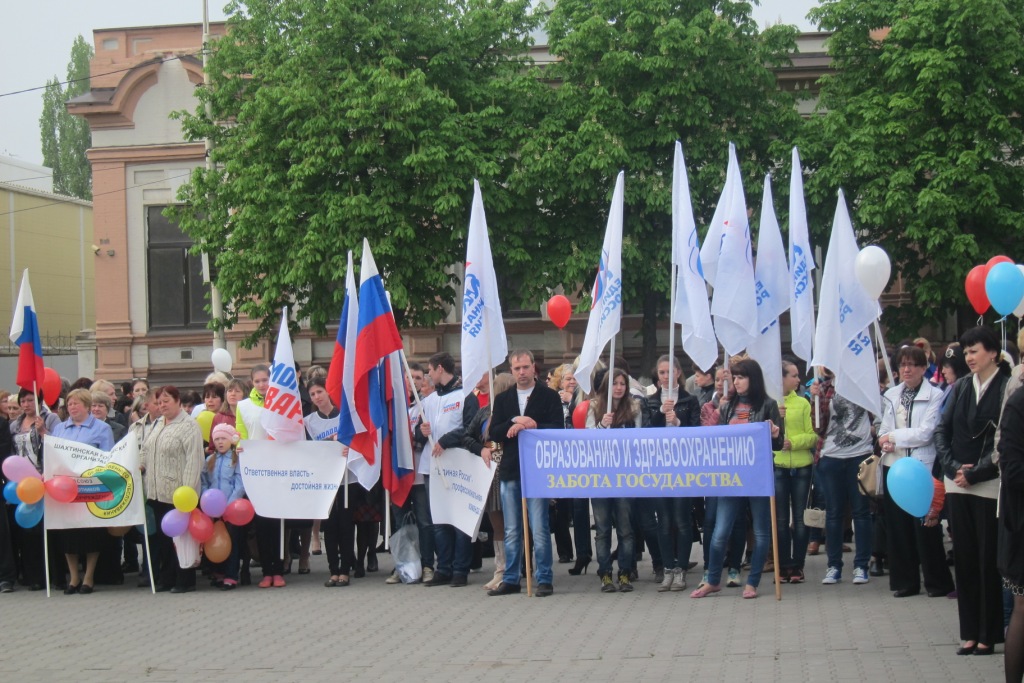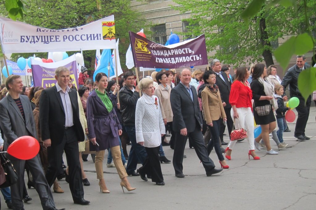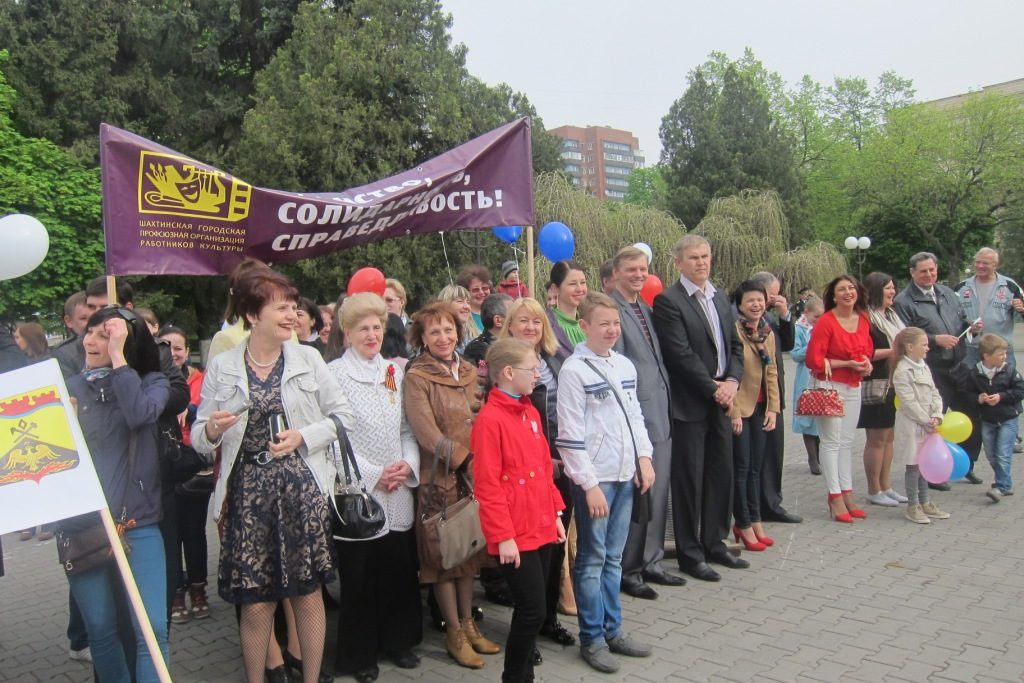 Колонна участников демонстрации начала формироваться около Дома техники, прошла по ул. Советской и выстроилась в ряды участников митинга на площади Ленина. Флаги отраслевых профсоюзов, воздушные шары с надписью «Россия вперёд!», транспаранты с лозунгами «Ответственная власть – достойная жизнь», «Образованию и здравоохранению – забота государства», «Единство, солидарность, справедливость!», «Культура – будущее России», «Сильные профсоюзы – крепкое общество», – такова была символика Первомая 2014 года. С приветственным словом к горожанам обратилась депутат городской Думы, руководитель исполкома ШМО Партии «ЕДИНАЯ РОССИЯ» Эльвира Мусаева, пожелала шахтинцам успехов в труде, отметила, что человек труда должен быть главной ценностью общества!