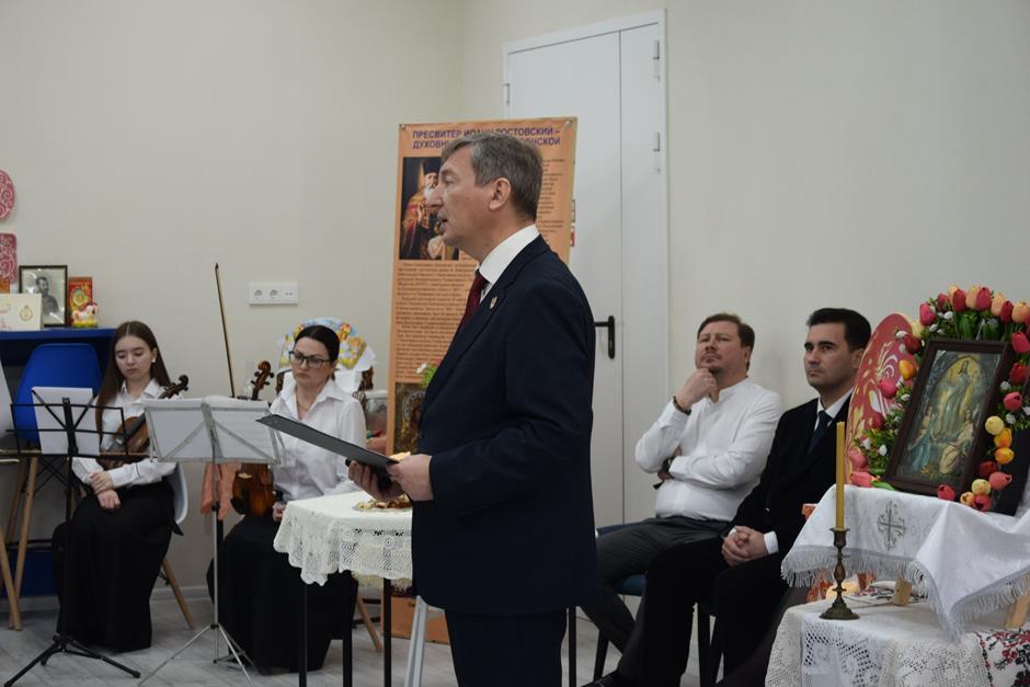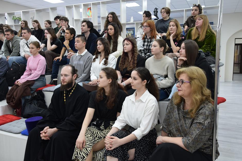 Разговор о духовном, вечном, непреходящих ценностях состоялся в читальном зале библиотеки вуза. В мероприятии, которое провел старший преподаватель кафедры, древлехранитель Шахтинской епархии Илья Шарков, приняли участие заместитель главы Администрации Александр Байздренко, декан кафедры «Техника и технологии» Дмитрий Русляков, настоятель храма Пресвятой Богородицы, иерей Олег Брехов, председатель Молодежного парламента при городской Думе города Шахты Андрей Ткачев, преподаватели ИСОиП и ссуза, студенческая молодежь, волонтеры культуры.