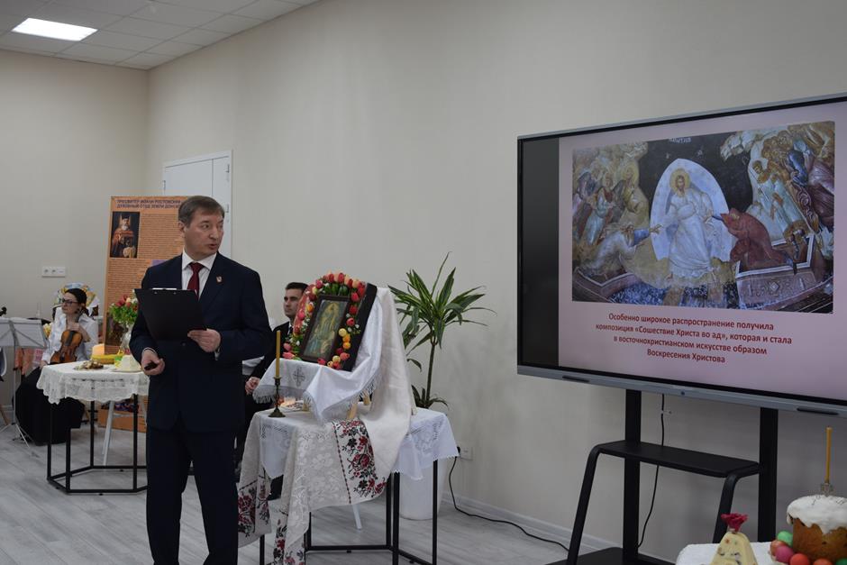 Собравшиеся ознакомились с иконографией Воскресения Христова, нюансами композиций, сюжетов, особенности школ библейского искусства. Узнали много нового о кулинарной истории Пасхи, символах, обрядах и непременных атрибутах хлебосольных застолий на Дону, а также в среде русских эмигрантов в китайском Харбине в 1920–1940 годах.