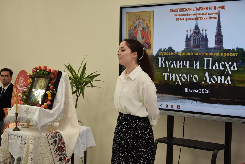 Изучению и популяризации донских традиций празднования Светлого Христова Воскресения, истории казачества и региона посвящен проект «Кулич и Пасха тихого Дона». Он подготовлен кафедрой «Православная культура и теология» Института сферы обслуживания и предпринимательства (филиала) ДГТУ совместно с Шахтинской епархией и музыкальным колледжем.