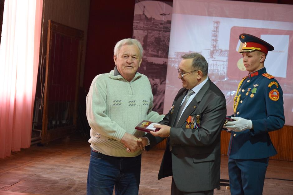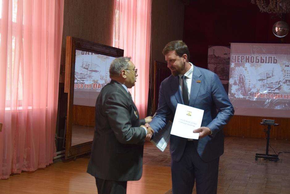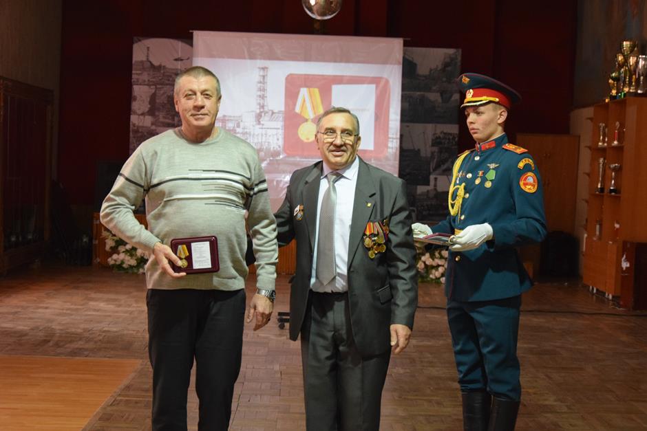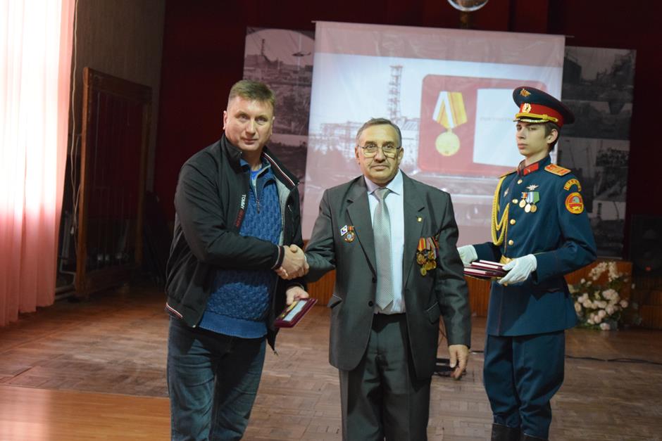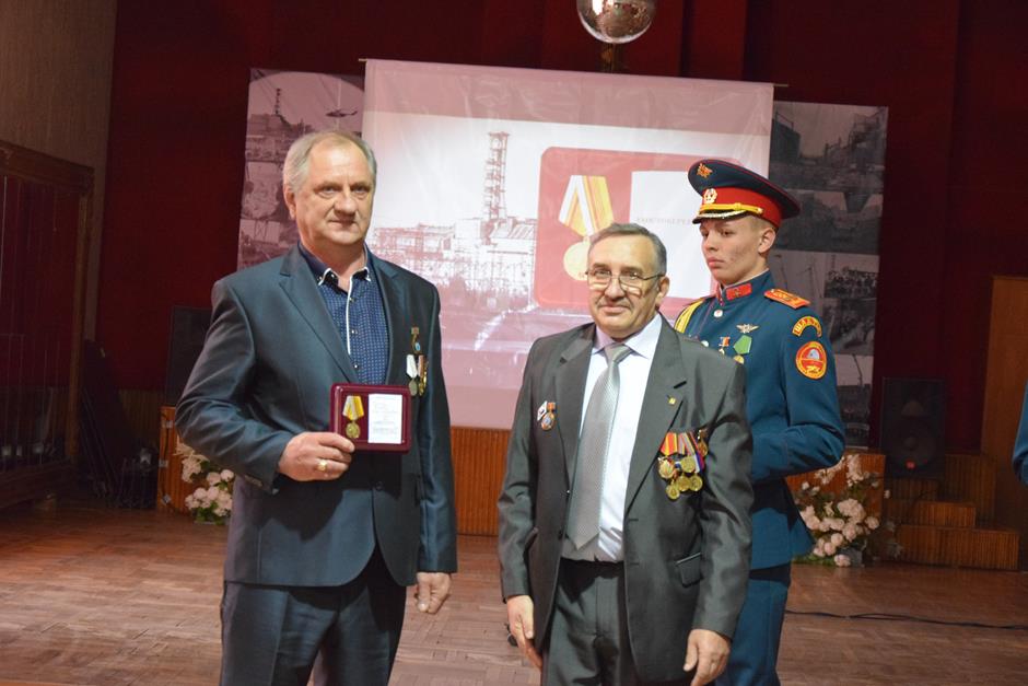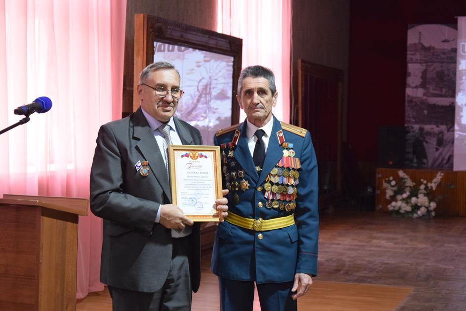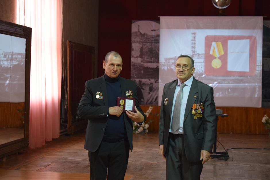 Состоялась также торжественная церемония вручения ликвидаторам-шахтинцам памятных медалей «40 лет ликвидации аварии на ЧАЭС».