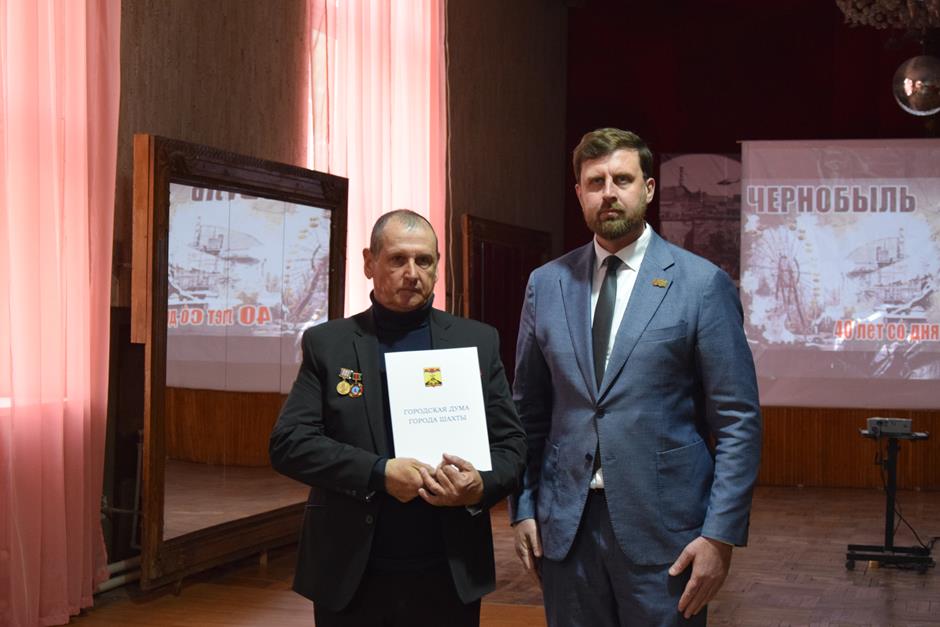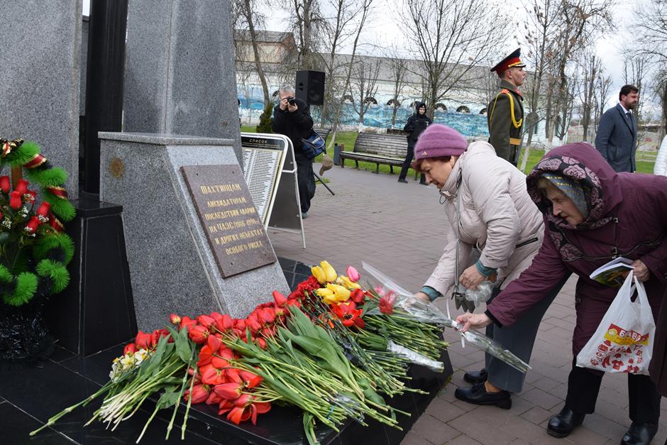 В предотвращении глобальных масштабов последствий аварии были задействованы 20 тысяч жителей Ростовской области, в том числе и шахтинцы. Память ушедших почтили минутой молчания. В возложении цветов приняли участие Глава города Шахты Людмила Овчиева, депутат ЗСРО Ирина Жукова, председатель городской Думы Максим Голодов, председатель Совета етеранов Александр Пятаков, благочинный Александровск-Грушевского округа Александр Теличкин, председатель шахтинского представительства РОО «Союз Чернобыль» Михаил Абнизов, ликвидаторы аварии на ЧАЭС, родственники погибших, представители общественности и молодежи.