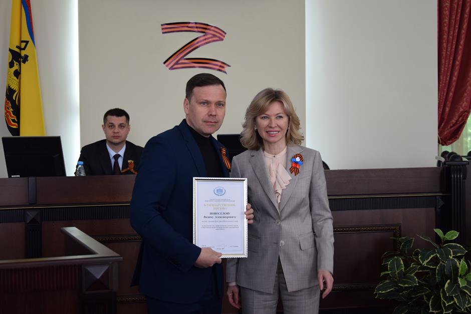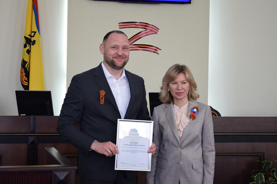 Апрельское заседание городской Думы началось торжественной церемонией. Ее открыла депутат Государственной Думы России Екатерина Стенякина, отметив Благодарственными письмами многолетний труд, профессионализм, активное участие в общественной жизни и развитии местного самоуправления города Шахты депутатов городской Думы Вадима Новоселова и Александра Петина.