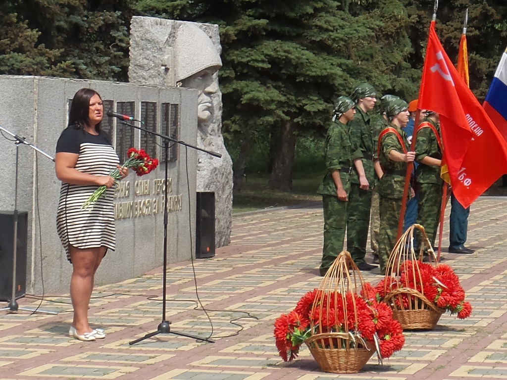 На митинге памяти у Вечного огня выступили мэр города Денис Станиславов, председатель городской Думы Ирина Жукова, ветеран войны Татьяна Столярова. Они выразили бесконечную благодарность нашему народу, который преодолел все невзгоды и вышел победителем в схватке с фашизмом, а потом ценой неимоверных усилий поднял из руин нашу Родину. К подножию Братской могилы были возложены венки и цветы.