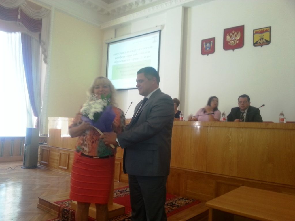 С приветственным словом к собравшимся обратился мэр города Шахты Денис Станиславов, он отметил, что все задачи, поставленные губернатором Ростовской области Василием Голубевым перед педагогическими коллективами муниципальных образований, будут выполнены в новом учебном году в полном объеме. Ведь должна решаться задача по подъёму качества школьного образования на более высокий уровень. Также мэр поблагодарил педагогов за высокий профессионализм, создание положительного имиджа системы образования в местном сообществе, акцентировал внимание на том факте, что город Шахты по количеству лауреатов и победителей конкурсов – лидер среди областных муниципалитетов. Мэр пожелал успехов педагогам в новом учебном году и наградил Почётной грамотой и Благодарственными письмами самых достойных.