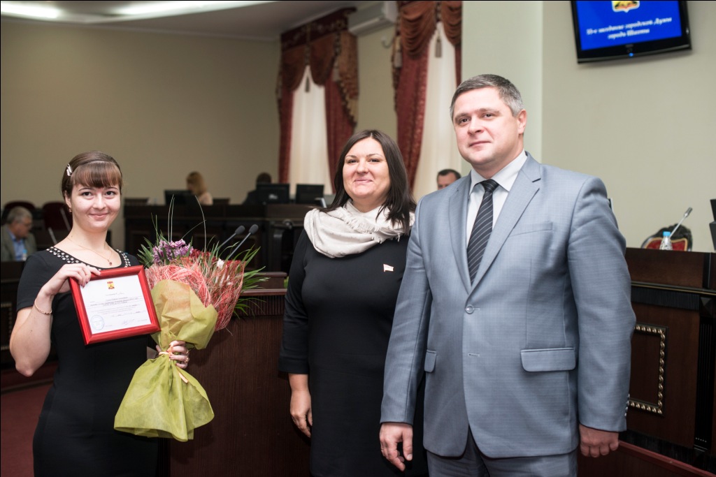 Процедуру награждения провели мэр Денис Станиславов и председатель Думы Ирина Жукова. Именные стипендии Мэра города получили: