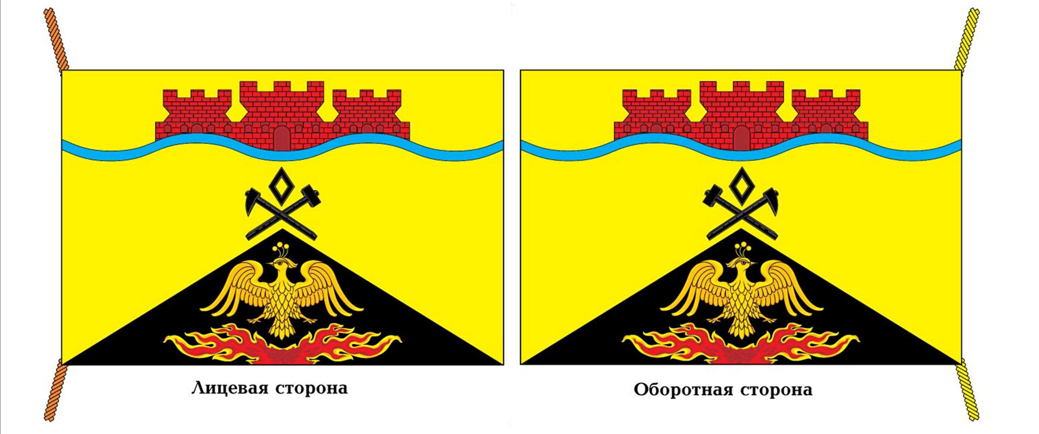 «Прямоугольное полотнище желтого цвета с отношением ширины к длине 2:3, воспроизводящее композицию герба муниципального образования «Город Шахты» красным, голубым, черным и желтым цветами» и воспроизводится согласно приложению 4;